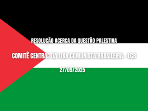 RESOLUÇÃO ACERCA DA QUESTÃO PALESTINA COMITÊ CENTRAL DA LIGA COMUNISTA BRASILEIRA – LCB 27/09/2025 A questão Palestina e uma análise da Catástrofe Contínua. Imagine uma terra de oliveiras centenárias e de laranjais. Um lugar, onde nas ruas estreitas as vozes se misturavam em árabe, hebraico, armênio, grego e inglês. Essa